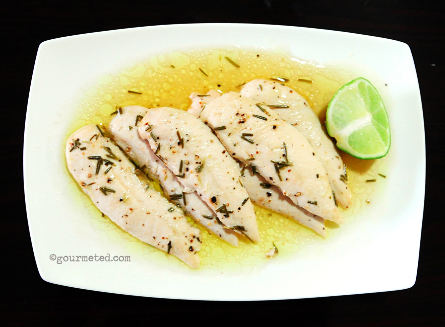 Pre-heat oven to 350F. Place the chicken fillets in a baking dish or pan in one layer and bake for 20 minutes. Turn off the oven and cover the baking dish with a sheet of aluminum foil. Close the oven and continue to bake with the residual heat for another 10 minutes before serving.